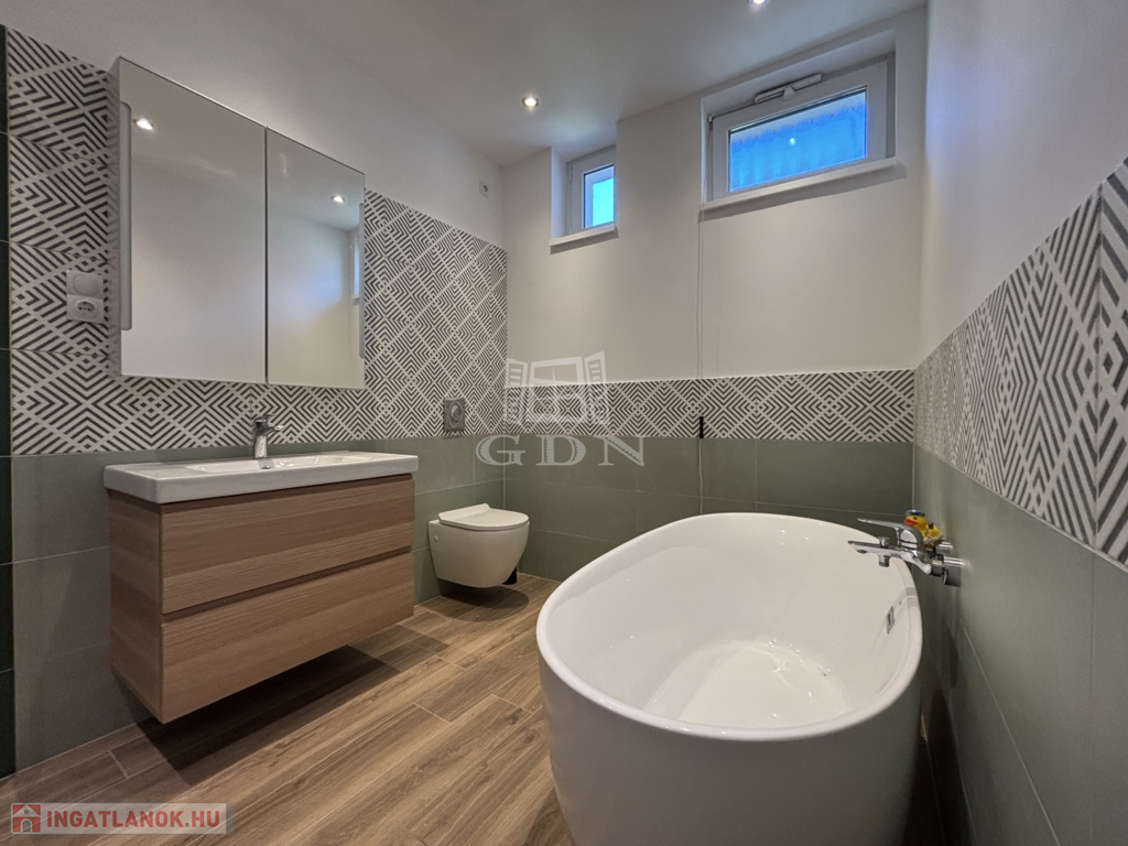 Fürdőszobákban Wellis, Laufen, Teka design szaniterek lettek beépítve.