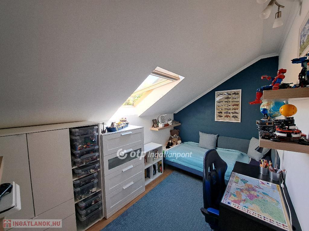 A felső szinten: nappali, négy hálószoba, fürdőszoba, étkező, konyha és egy kisebb gardrób helyiség. A belső kialakítás rendkívül jól átgondolt, világos, jól élhető terekkel.