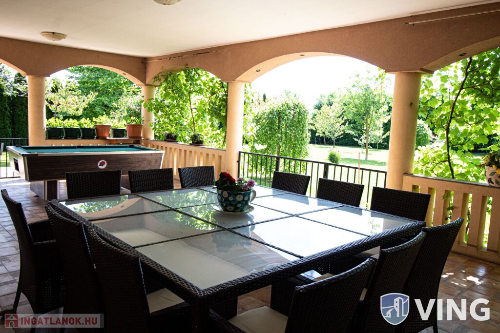 Dieses einzigartige Familienhaus im toskanischen Stil, erbaut aus hochwertigen Materialien, steht in Nagyrécse, nur wenige Minuten von Nagykanizsa entfernt, zum Verkauf. Das Anwesen im mediterranen Stil wurde 2005 auf einem Doppelgrundstück erbaut. Die Eigentümer achteten beim Bau auf jedes Detail und überwachten den gesamten Bau. Das Haus wurde aus Phorotherm-Ziegeln der Güteklasse 38 gebaut, die mit edlem Putz verkleidet wurden, und das Dach wurde mit Terran gedeckt. Die Inneneinrichtung des Hauses wird von großzügigen Räumen dominiert, da alle Räume vom Wohnzimmer aus einsehbar sind. Beim Betreten des Hauses gelangt man in einen schönen, geräumigen Flur, von dem aus der innere Niveauunterschied sichtbar wird, der ebenfalls ein Symbol des mediterranen Stils ist. Von diesem Raum aus gelangt man über eine einzigartige geschwungene Treppe in das Obergeschoss, das aus drei Zimmern mit separaten Eingängen, einem separaten Badezimmer und einer separaten Toilette besteht. Alle drei Zimmer haben einen Terrassenanschluss. Zurück in der unteren Ebene befinden sich zwei Zimmer mit separaten Eingängen, ein großes, luftiges Wohnzimmer, eine Küche und ein Esszimmer mit Terrassenanschluss. Dank der Ost-West-Süd-Ausrichtung des Hauses ist der Innenraum das ganze Jahr über lichtdurchflutet. Holzfarbene Kunststoffläden sorgen für Wärmedämmung. Für Schatten sorgen exotische, gedämpfte Holzjalousien. Mehrere Klimaanlagen sorgen an heißen Sommertagen für Abkühlung. Ein leistungsstarker Circo-Heizkessel, der an einen Warmwasserspeicher angeschlossen ist, sorgt an kalten Wintertagen über Heizkörper und Fußbodenheizung für Heizung und Warmwasserbereitung und trägt so zum Komfort der Bewohner bei. Die Atmosphäre des Wohnzimmers wird durch den zentral gelegenen Kachelofen noch verstärkt, dessen Wärme und das Knistern des Holzes zur winterlichen Ruhe der Wohnung beitragen. Die Atmosphäre des Hauses spüren wir auch beim Betreten der Terrasse, dank der gepflanzten Weinreben und des schönen, gepflegten Gartens. Die Terrasse ist ein idealer Ort für größere Familienfeiern und Partys. Parkplätze stehen in der Doppelgarage zur Verfügung, die ebenfalls mit dem Innenbereich der Wohnung verbunden ist. Für die Sicherheit der Bewohner sorgt ein Alarmsystem, das bei unerwünschten Bewegungen oder Türöffnungen sofort die Fernüberwachungsfirma benachrichtigt. Wenn Sie nicht bauen oder renovieren möchten und ein ruhiges Anwesen im italienischen Stil abseits des Lärms von Nagykanizsa suchen, sollten Sie sich das ansehen. Büro: Nagykanizsa Platán sor 7 (Unsere weiteren Angebote finden Sie auf der offiziellen VING-Website.)