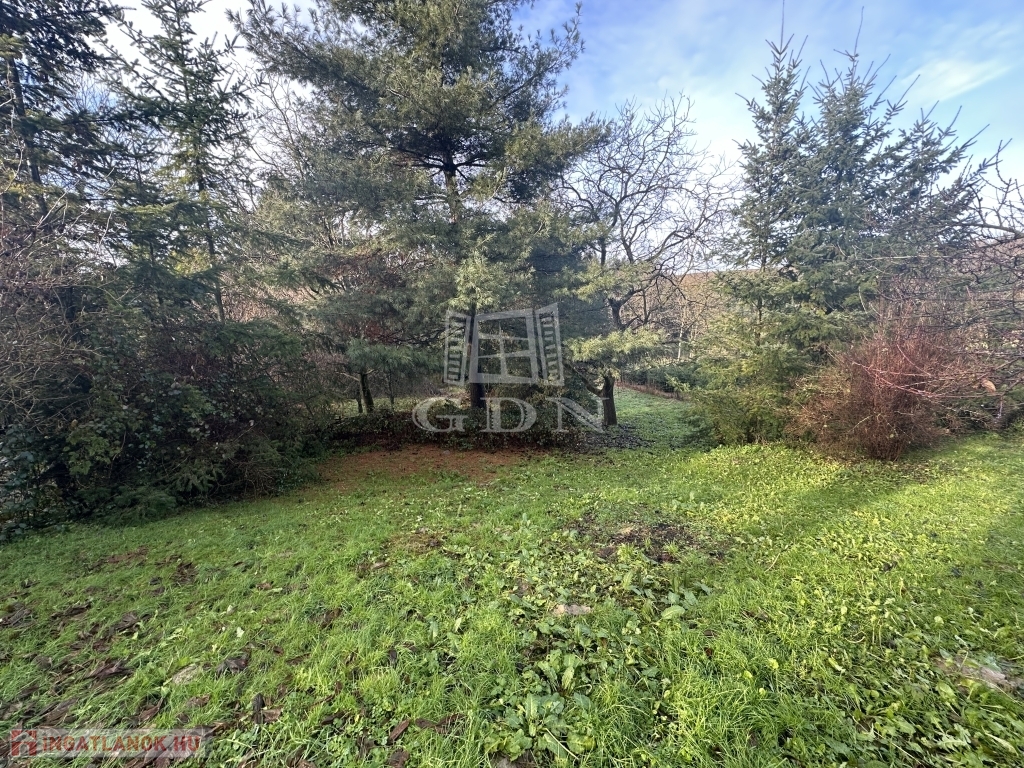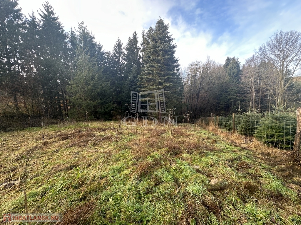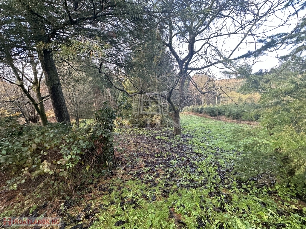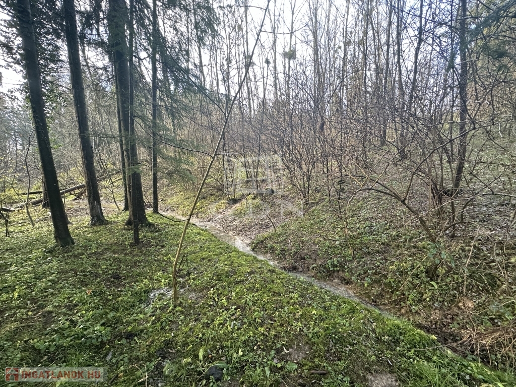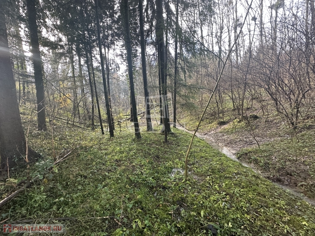 A telekterület enyhén lankás, a telek végén a fenyők között csörgedező patak magával ragadó látványt nyújt.