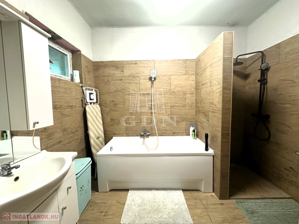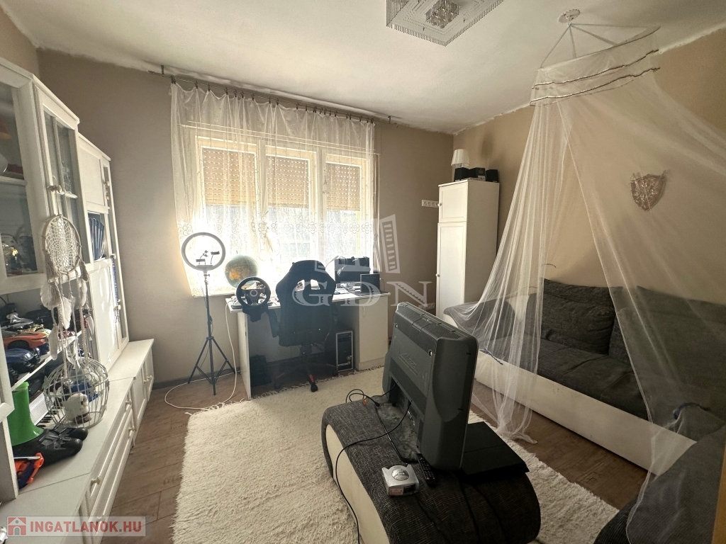 A ház lakószintjén, mely részlegesen újításra is került 3 szoba, konyha, fürdőszoba, mellékhelyiség, kamra, és egy méretes közlekedő kapott teret.