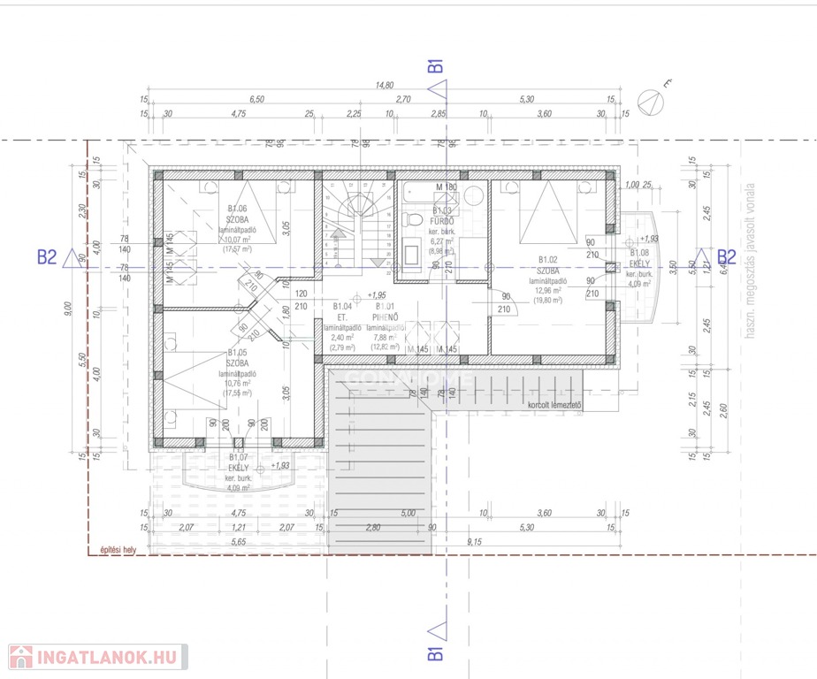 - Erkély: 4,09 m2, korcolt lemezfedéssel