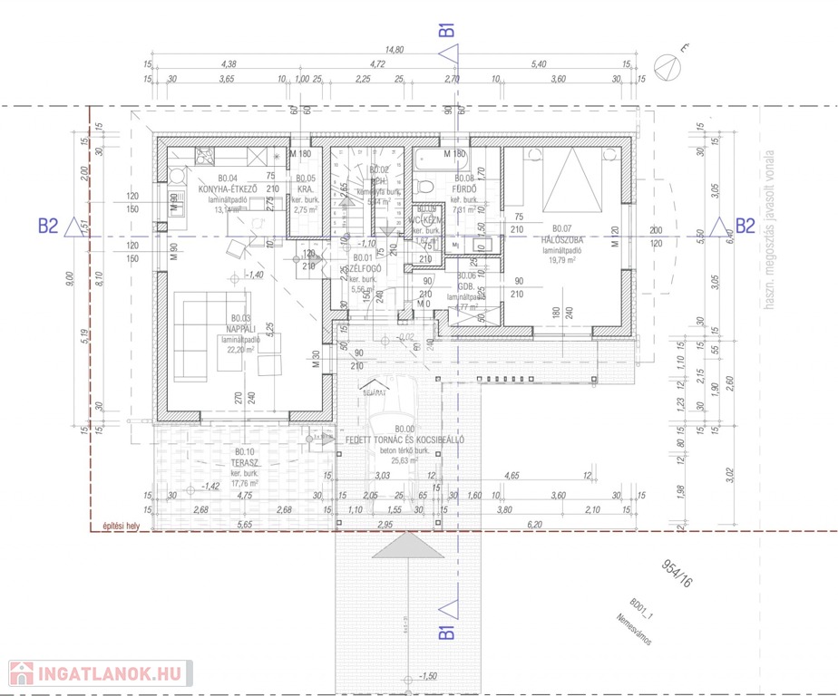 902 m²-es sarki telken, külön bejárattal, épül két 133 m²-es, modern családi ház, 451 m² saját telekrésszel.