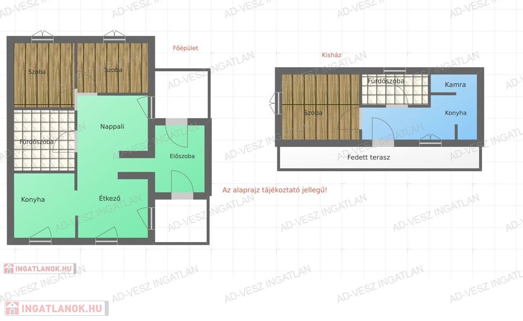 A 64 nm-es ingatlanban megtalálható 2 különálló szoba,nappali,étkező,konyha,fürdőszoba-wc,előszoba.