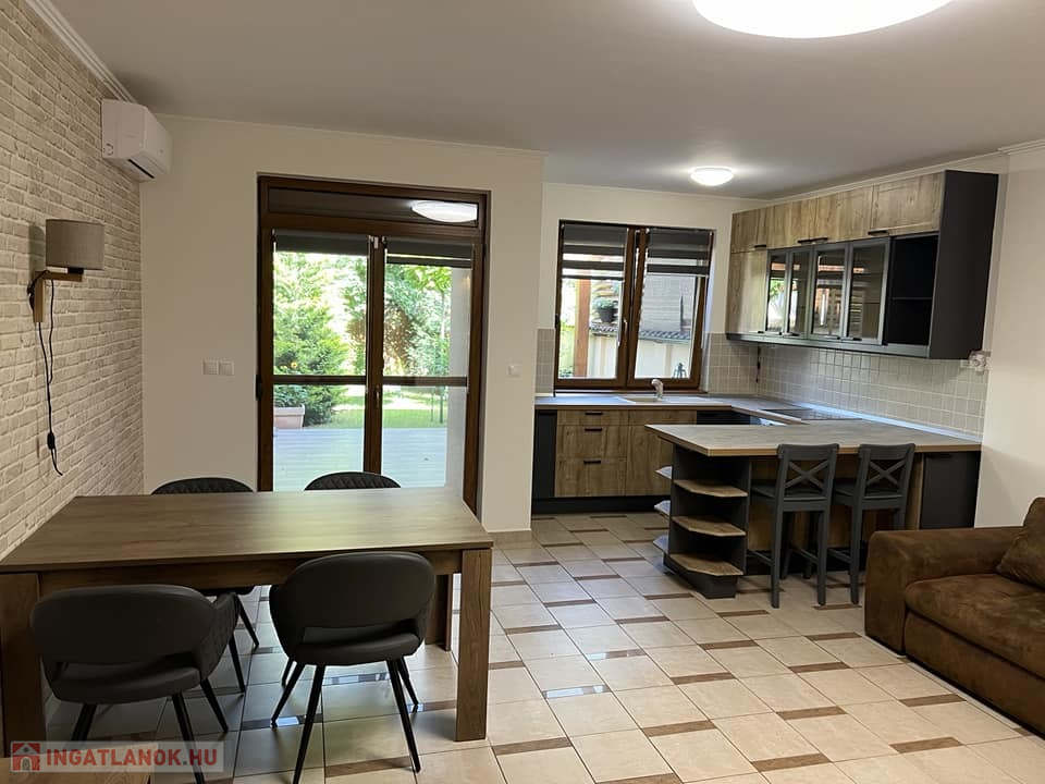 Az ingatlan egyedi gázfűtéses, a földszinten padlófűtéssel, az emeleten radiátor fűtéssel. A sorház redőnyökkel, rovarhálóval, klímákkal,  riasztó és kamerarendszerrel felszerelt, és egy 25 nm-es fedett terasz tartozik hozzá. A  földszinten amerikai konyhás nappali, fürdőszoba zuhanyzóval és WC-vel, valamint előtér található, az emeleten három szoba, fürdőszoba, mosókonyha, gardrób helyiség került kialakításra. Az ingatlan fekvése igen kedvező ezért szinte minimális a fenntartási költsége.