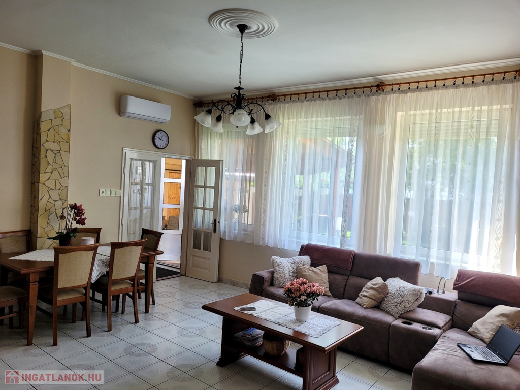 Nyíregyháza, Belvároshoz közel eladásra kínálok egy 4 szoba+ nappalis, külön konyhás kiváló állapotú családi házat!Főbb jellemzők:- egyedi konyhabútor- zuhanyzós fürdőszoba- műanyag nyílászárók redőnnyel szerelve- hűtő- fűtő klíma- mosó konyha- új tetőszerkezet- két állásos garázs- egyedi gázfűtés (padlófűtés, radiátor)- fedett terasz- tehermentesAz ingatlan vegyes falazatú (főleg tégla), 457m2-es parkosított telken helyezkedik el. A bútorok külön alku tárgyát képezhetik.Az ingatlan azonosítója: 68166Érdeklődni: +36306982324 Az ingatlan azonosítója: 68166 Érdeklődni: +36306982324
