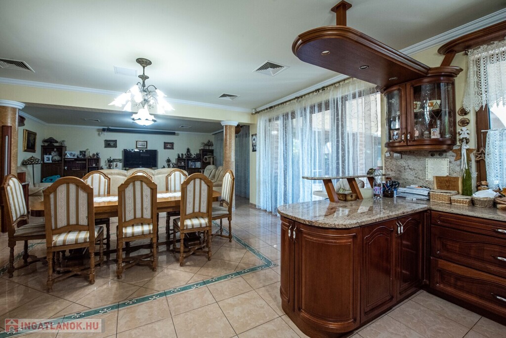 Nyíregyházán, Oros elején, minden igényt kielégítő, 620 nm összterületű, 2009-ben Ytongból épült, 4 szoba + tágas konyha étkező nappalival. Az ingatlan 2 szintes, alsó szintjén nappali, konyha, étkező, 1 hálószoba, 2 fürdő wc-vel, terasszal, felső szintjén 3 hálószoba, fürdőszoba, mellékhelyiséggel valamint egy gardrobe szoba található. járólap és laminált padló burkolatú, 2 db kondenzációs gázkazánnal és minden fő helységben klímával. Az ingatlanhoz tartozik egy 45 nm-es iroda helyiség, 40 nm-es konditerem, valamint egy 300nm-es zárt 6 x 20 m-es medence amelyet nyáron a napkollektor télen pedig gáz hőcserélős medencefűtés rendszer fűti. A továbbiakban 2 állásos garázzsal és 2 állásos autóbeállóval, prémium minőségű nyílászárók, 11.2 KW -os napelem rendszer, 3500 nm-es gyönyörűen parkosított telken, beépített öntözőrendszerrel, filagóriával családi ház eladó.Az ingatlan azonosítója: 97247Érdeklődni: +36702560693 Az ingatlan azonosítója: 97247 Érdeklődni: +36702560693