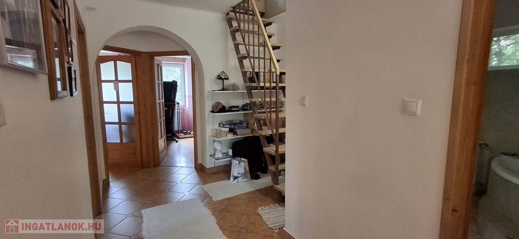 Az alsó szinten: amerikai konyha + nappali, 3 hálószoba, spájz, konyha, fürdő, wc. A nappaliban egy szuper cserépkályha, mely igazán megadja a ház egész hangulatát.