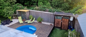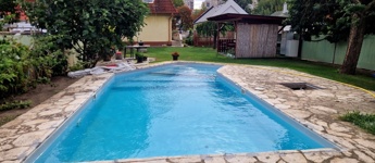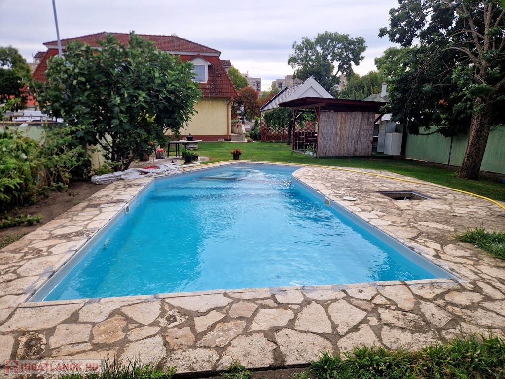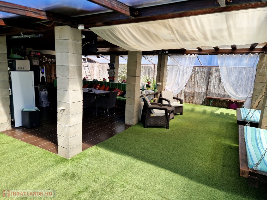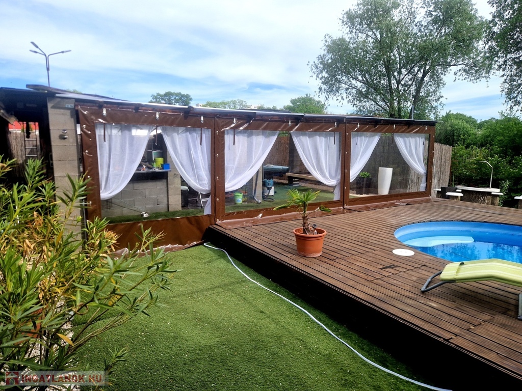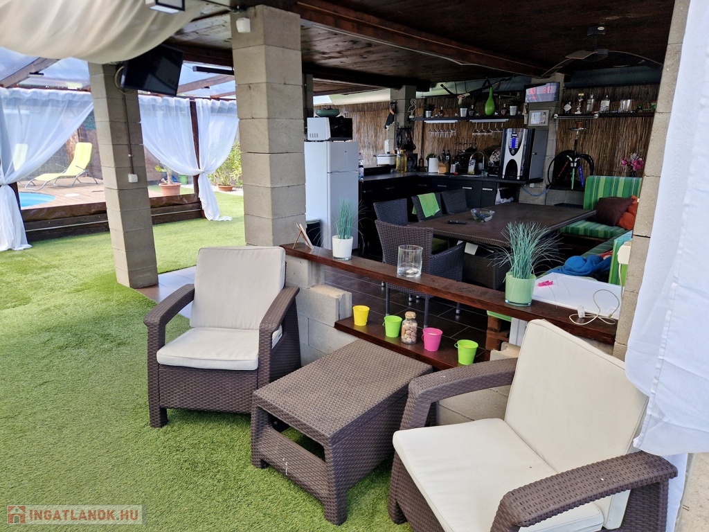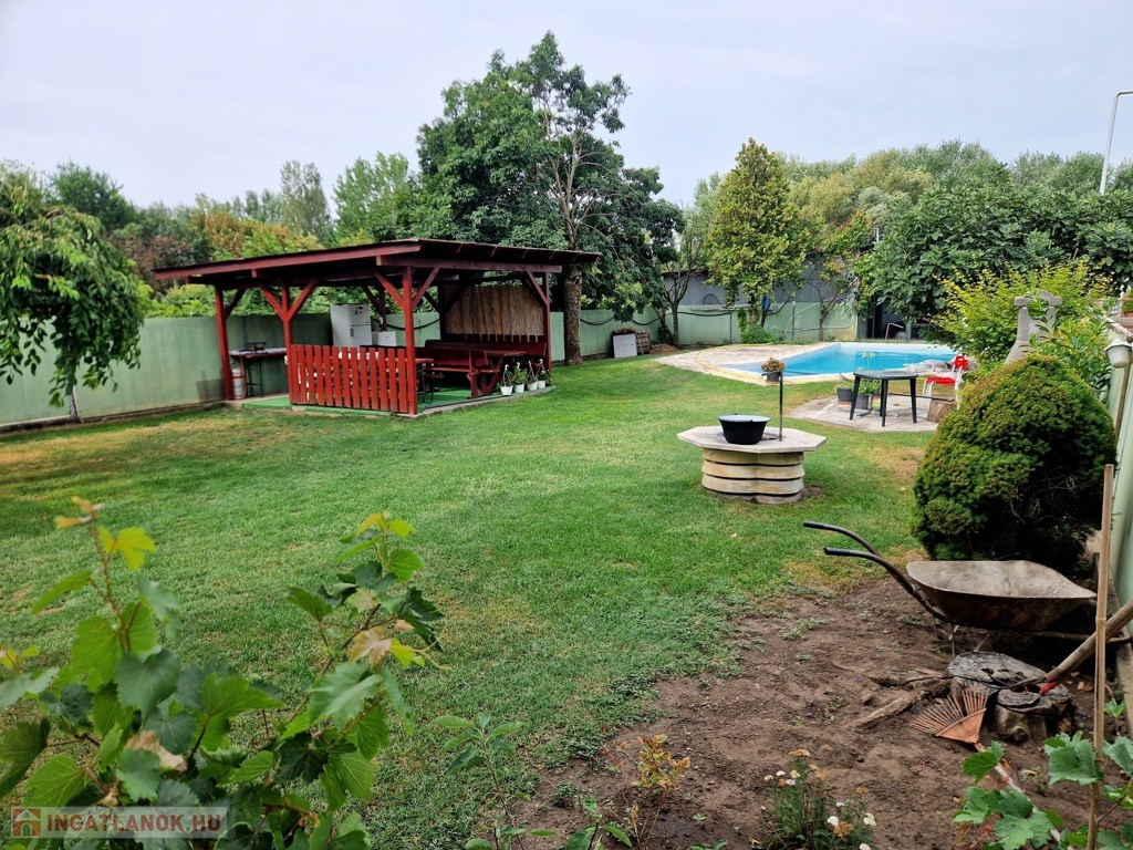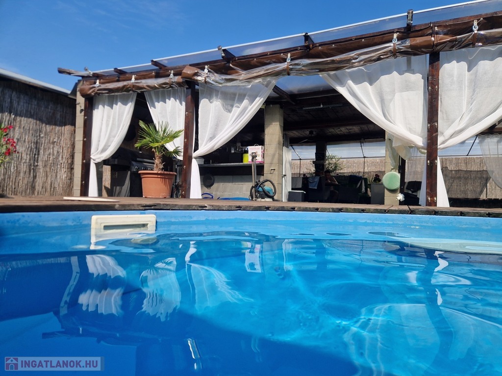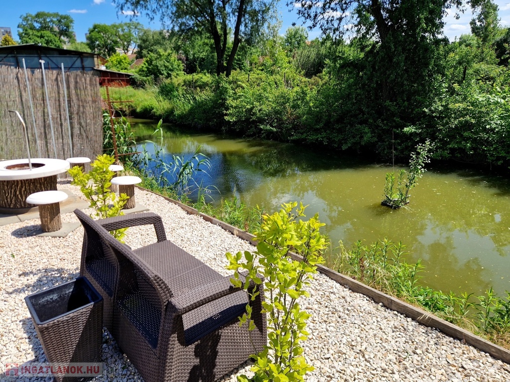 Továbbá az ingatlan területén 2 különálló, gondozott kert is található ahol: hangulatos filagória és medence wellness részleggel biztosítja a pihenést, egy természetes halastó: 20m × 10 méteres vízfelülettel várja a kikapcsolódásra vágyókat.