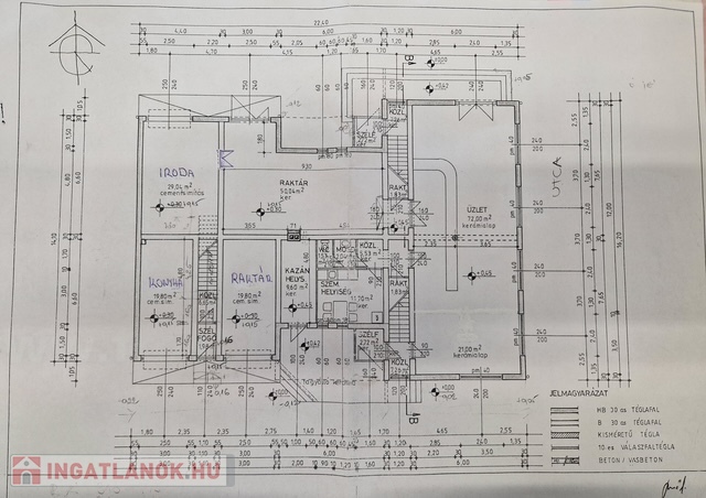Az alsó szinten üzleti tevékenységre kiválóan alkalmas helyiségek: 80 m²-es utcafrontos, nagy üvegportálos üzlethelyiség tökéletes kereskedelmi vagy szolgáltató tevékenységre 70 m²-es raktár 20 m²-es iroda 15 m²-es vizes blokk 6 m²-es kazánház 12 m²-es nyári konyha 12 m²-es egyéb helyiség