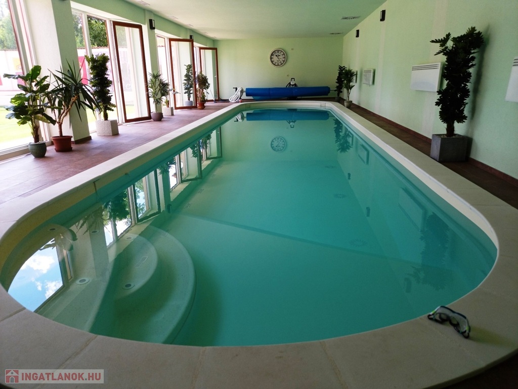 Fűtött medence: 16x3,4 m, teljes gépészettel és légtechnikával, jakuzzival
