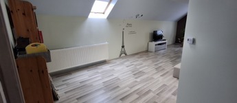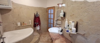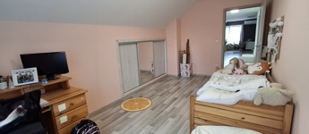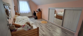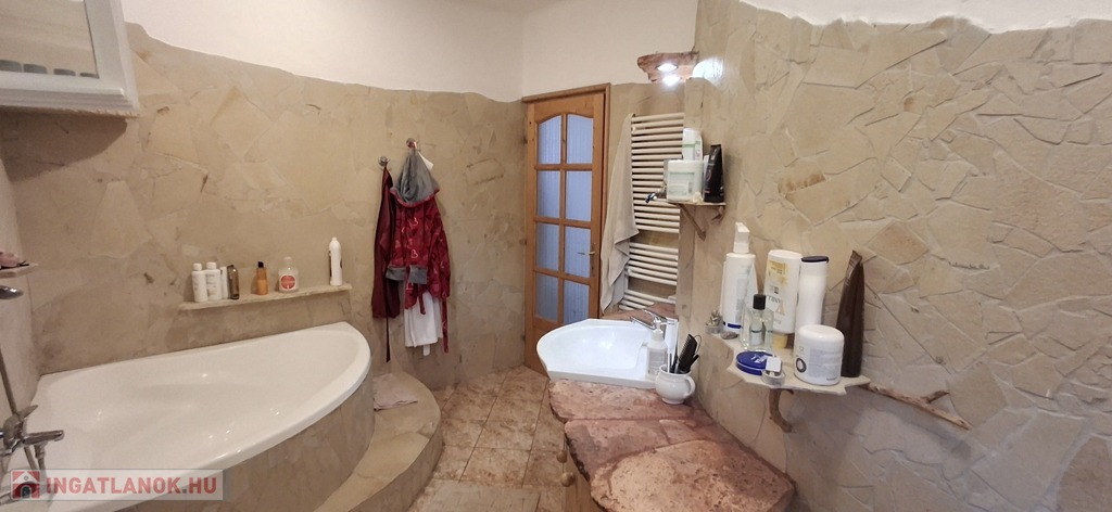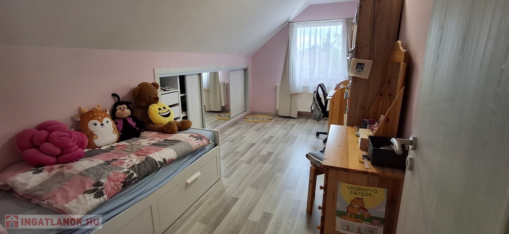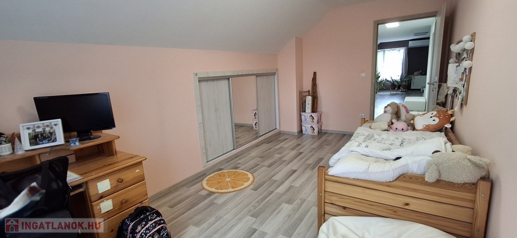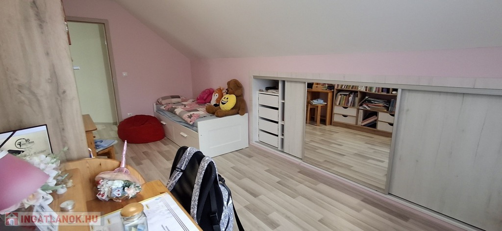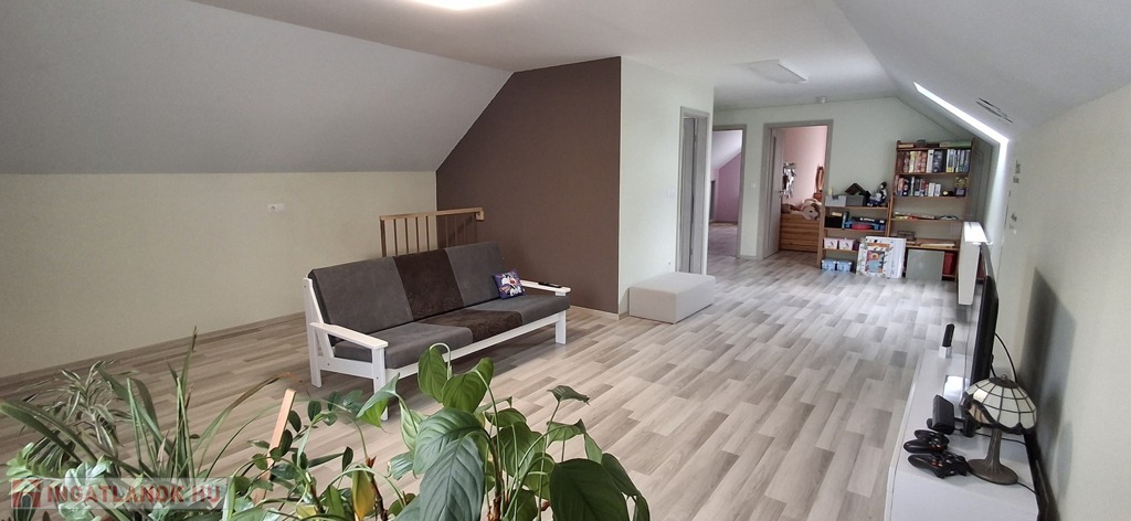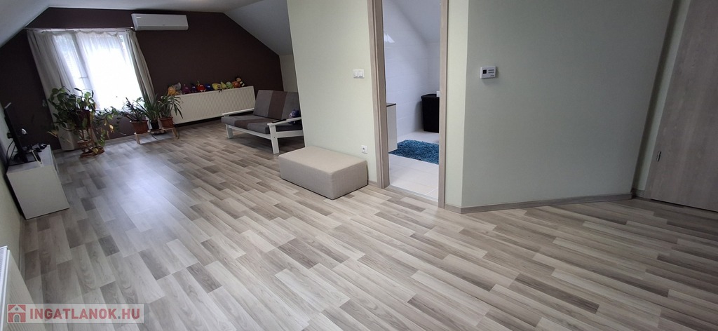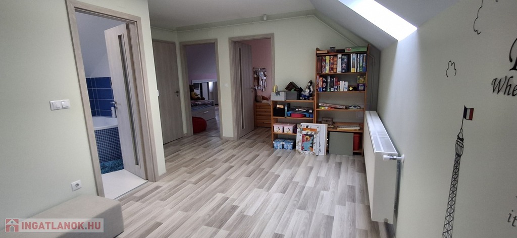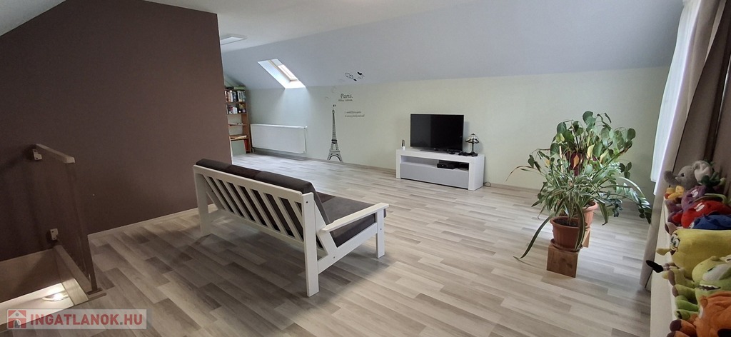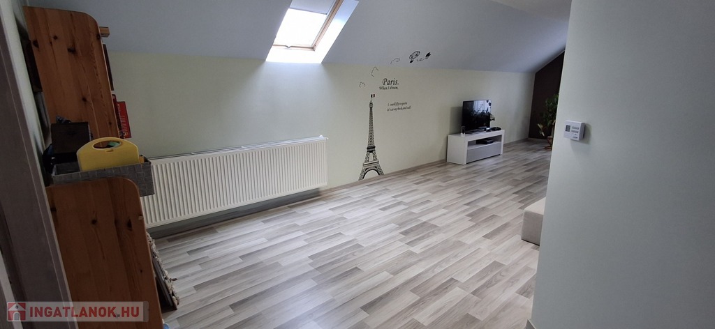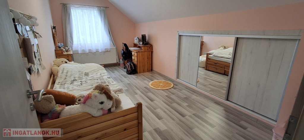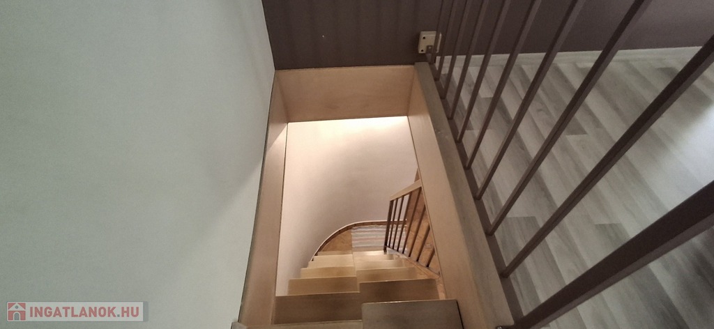 A felső szinten: nappali, 2 hatalmas hálószoba, fürdő, wc.