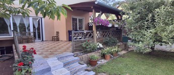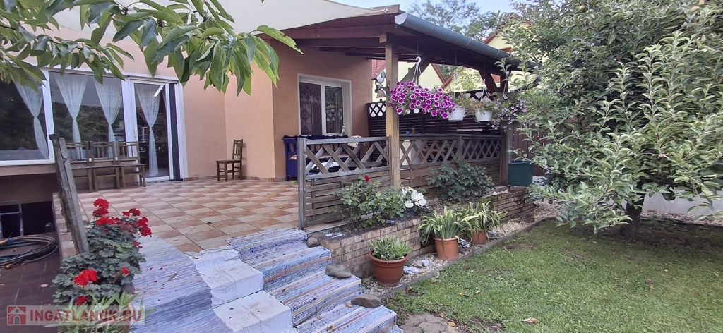 50 nm-es terasz, mely részben fedett, 40 nm-es pince, garázs. A parkosított udvar gyönyörű látványt nyújt, saját játszótér a gyerekeknek.