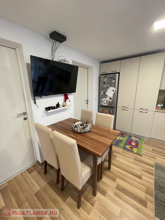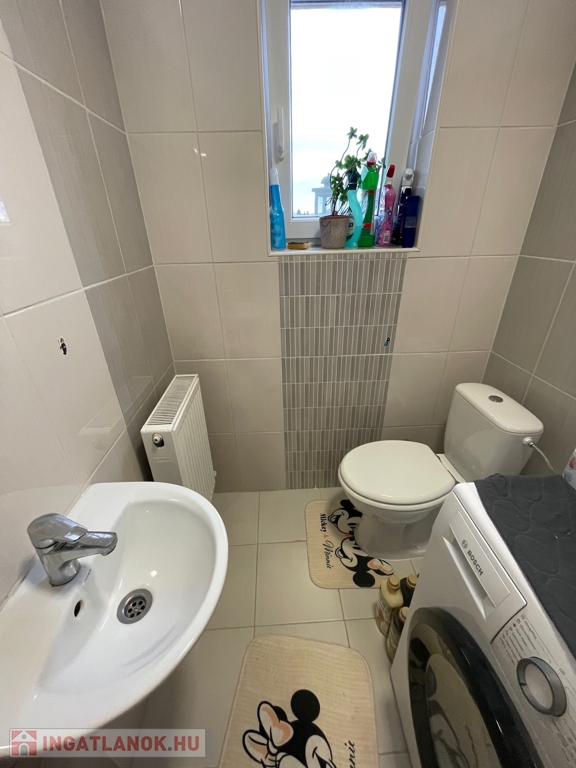 Az ingatlan szoba nappalis, elrendezése praktikus és kényelmes. A szobák laminált padlóval, míg a közlekedők és a vizes helyiségek járólappal burkoltak. A fürdőszoba és a WC külön helyiségben kapott helyet, ami tovább növeli a komfortérzetet.