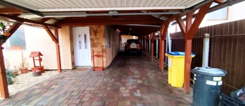 A térkövezett udvaron 4 autó befogadására alkalmas fedett beálló áll rendelkezésre.