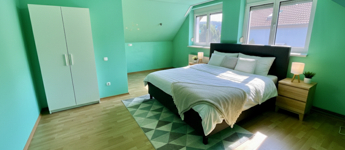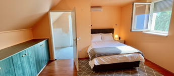 A ház két perc sétára van az erdőtől, itt mindenki megtalálja a természet pihentető levegőjét. Több fűtési rendszer is kínál alternatívát.