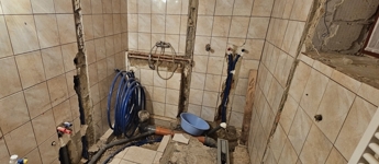 A fürdőszoba kialakítása elkezdődött, így az új tulajdonos saját ízlésére formálhatja.