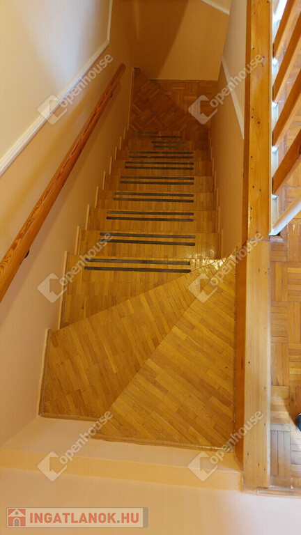 Földszint: előszoba, külön WC, konyha kamrával, tágas nappali; a bejárat előtt nagy terasz, ahonnan néhány lépcsőn keresztül, szintkülönbséggel juthatunk a gondozott kertbe. A nappalihoz nagy erkély tartozik..