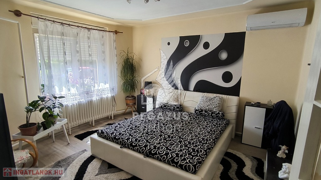 Elrendezés: Az összesen 200 m²-es alapterületű házban 5 szoba és 2 fürdőszoba található. A két külön bejárat lehetőséget ad arra, hogy a házat két, egymástól független lakrészként használják, ami ideális megoldás, ha a család több generációja él együtt.