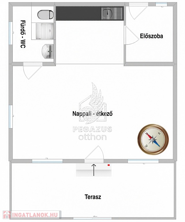 -Hátsó előszoba: A telek hátsó részére nyílik.