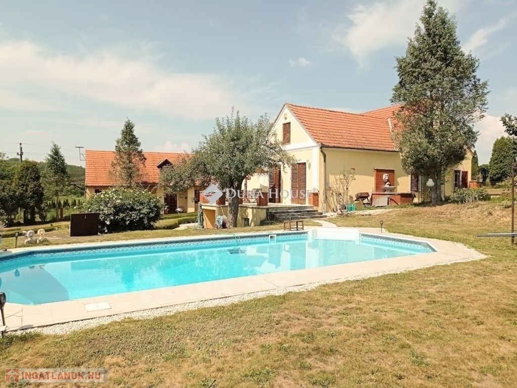 Eladásra kínálok Zala vármegyében, Páka-Dömeföldön egy tényleg kuriózumnak számító ingatlant !Az épületet valamikor az 1910-es években építette egy mezőgazdasággal foglalkozó jómódú család. A történelem viharainak köszönhetően elhagyták az országot és sokáig elhagyatottan állt az épület.1997-ben új tulajdonosa lett az ingatlannak, ki meglátta benne a fantáziát és a lehetőségeket. Pénzt és időt nem kímélve teljeskörűen felújította, modernizálta az álom házát. Folyamatosan gondozta a kertet, új dísznövényeket, gyümölcsfákat telepített.Most az Öné lehet ez a nem mindennapi birtok.Az ingatlanról röviden:-összesen 19.600 m2 körbekerített terület-a lakótér 240 m2 , ahol két szinten találunk 2 nappalit, konyhát, étkezőt, 3 szobát, 2 fürdőt wc-vel, közlekedőt, előszobát- külön 75m2-es vendégház, ahol 3 szoba, fürdő wc-vel, valamint egy tetőtéri hobbiszoba tartozik az ingatlanhoz-10,4x5 m-es kültéri medence szolgálja a lakók kényelmét nyáron- dupla garázs 44 m2-en-fűtésről GÁZCIRKÓ kazánok gondoskodnak-a nappali dísze egy cserépkályha, ami meghitt hangulatot és kellemes meleget tud biztosítani a téli hónapokban-borospince 40 m2-en-gondozott kert, többféle gyümölcsfa, épített rózsalugas-a vételár tartalmazza a teljes bútorzatotAjánlom mindazoknak, akik a csendet és nyugalmat keresik és szinte szomszédmentes helyen szeretnék eltölteni szabadidejüket, vagy akár életvitelszerűen beköltöznének.Befektetésnek sem utolsó, hiszen esküvőket, kölönféle táborokat , kurzusokat lehet tartani, vagy akár kadásra is alkalmas az ingatlan.A közelben Pákán bevásárlási lehetőség, orvosi rendelő, étterem található, de pár km-re található a Lenti termálfürdő, Horvátország és Szlovénia is csak egy ugrásra fekszik.Bárminemű kérdésük lenne, hívjanak bizalommal.Ich biete eine wahre Kuriosität in Páka-Dömeföld, Komitat Zala, zum Verkauf an!Das Gebäude wurde irgendwann in den 1910er Jahren von einer wohlhabenden, in der Landwirtschaft tätigen Familie erbaut. Aufgrund der Stürme der Geschichte verließen sie das Land, und das Gebäude stand lange Zeit leer.1997 wechselte das Anwesen zu einem neuen Eigentümer, der die Fantasie und die Möglichkeiten darin erkannte. Er renovierte und modernisierte das Traumhaus komplett und scheute dabei weder Zeit noch Geld. Er kümmerte sich ständig um den Garten und pflanzte neue Zierpflanzen und Obstbäume.Jetzt kann dieses außergewöhnliche Anwesen Ihnen gehören.Kurzinformationen zum Anwesen:- Gesamte eingezäunte Fläche von 19.600 m²- Wohnfläche von 240 m² mit 2 Wohnzimmern, Küche, Esszimmer, 3 Schlafzimmern, 2 Badezimmern mit WC, Flur und Diele auf zwei Ebenen- Separates 75 m² großes Gästehaus mit 3 Zimmern, Badezimmer mit WC und einem Hobbyraum auf dem Dach- Ein 10,4 x 5 m großer Außenpool sorgt im Sommer für Komfort der Bewohner- Doppelgarage von 44 m²- Die Heizung erfolgt über GAZCIRKÓ-Heizkessel- Das Wohnzimmer ist mit einem Kachelofen ausgestattet, der in den Wintermonaten für eine gemütliche Atmosphäre und angenehme Wärme sorgt- Weinkeller von 40 m²- Gepflegter Garten mit mehreren Obstbäumen und einer Rosenlaube- Im Kaufpreis sind alle Möbel enthaltenIch empfehle es allen, die Wert auf Ruhe und Frieden legen und ihre Freizeit an einem Ort mit fast keinen Nachbarn verbringen oder sogar als Lebensstil einziehen möchten. Es ist auch eine Investition, da das Anwesen für Hochzeiten, verschiedene Camps, Kurse oder sogar für einen Urlaub genutzt werden kann.Im nahegelegenen Páka gibt es Einkaufsmöglichkeiten, eine Arztpraxis und ein Restaurant, aber das Thermalbad Lenti ist nur wenige Kilometer entfernt und Kroatien und Slowenien sind nur einen Katzensprung entfernt.Bei Fragen rufen Sie uns gerne an.Der Kaufer muss nicht zahlen Provision !