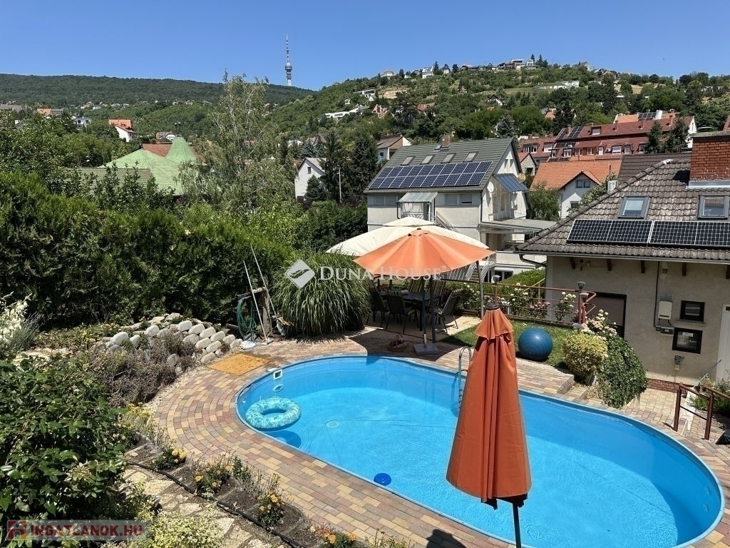 A keletre néző terasz egész nyáron hűvös, a hatalmas medence pedig garantálja a nyári kikapcsolódást.