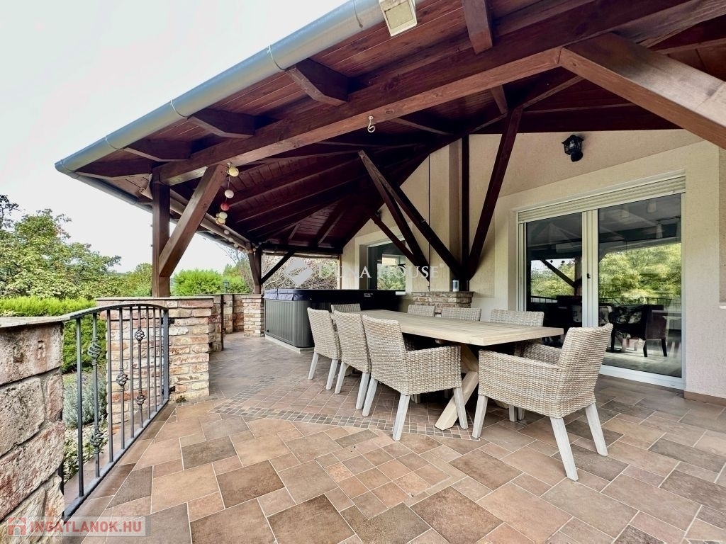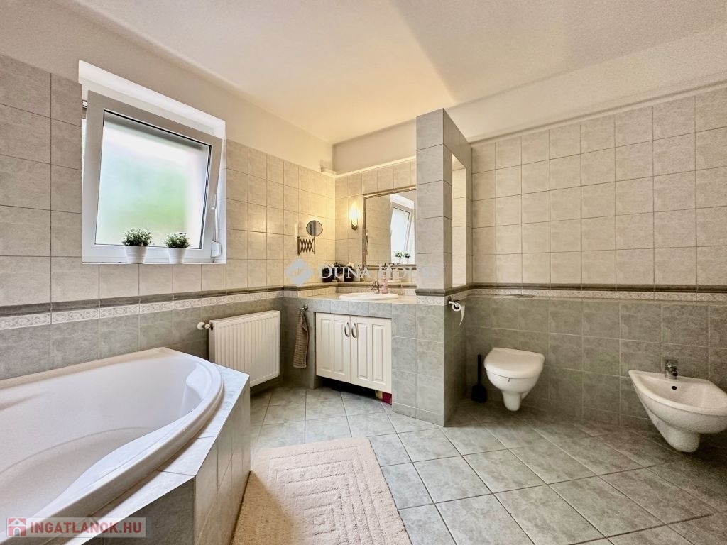 Eladásra kínálunk egy panorámás, 300 m²-es, 7 szobás, dupla komfortos, téglaépítésű , akár 2 generáció együttélésére is alkalmas családi otthont. Ne hagyja ki ezt a különleges lehetőséget, hogy a város felett, de mégis közel annak szívéhez élhessen. A mindkét fürdőszoba designja különleges figyelmet kapott, ahol a minőségi burkolatok és szaniterek mellett egyedi világítás gondoskodik a relaxáló atmoszféráról. Itt a nap bármely szakában élvezhetjük a kényeztetést és a privát wellness élményét. Fedett teraszon Jakuzzi található. A modern, teljesen felszerelt konyha minden igényt kielégít, legyen szó akár egy gyors reggeliről vagy egy nagyobb családi vacsoráról. Az ingatlan klímával , elektromos redőnnyel felszerelt. Keressen minket bizalommal az ingatlan megtekintéséhez, és tegyen szert erre a kivételes otthonra.