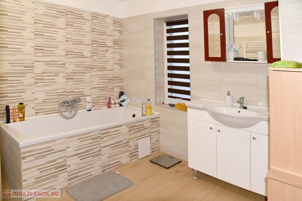 A Pécs Rózsadomb gyorsan fejlődő részén lévő eredeti házból mindössze a falak maradtak, ehhez lett hozzáépítve amire 15 cm-es szigetelés lett felrakva. Új elektromos -, gáz-, és vízvezetékek, új gáz(cirkós) fűtési rendszer modern kondenzációs kazánnal, külső és belső nyílászárókkal, új tető. A ház belül is modern új belsőt kapott, igény esetén még egy szoba kialakítható. A ház alsó szintjén két állásos garázs, tároló, amiből egy téglával kirakott pincébe lehet lejutni. A felső két szinten teljes klíma kiállás (vezetékelve, csövezve) ahova hűtő-fűtő klíma szerelhető.