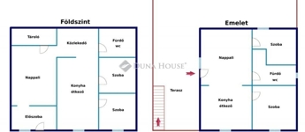 Az alsó szinten nappali, konyha, két hálószoba és fürdőszoba található, míg az emeleti lakrészben két hálószoba, nappali, amerikai konyha és egy tágas terasz biztosít kényelmes életteret.