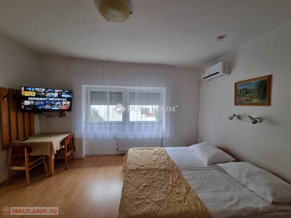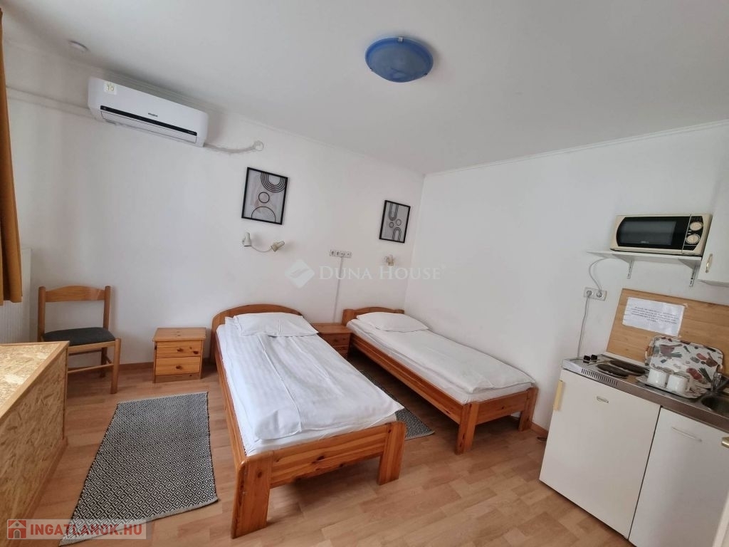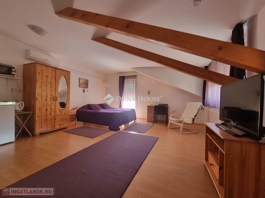 KIVÁLÓ BEFEKTETÉSI LEHETŐSÉG - Egyetemvárosi apartmanház eladó!!!!Kórház tér szomszédságában eladó egy 840nm-es telken elhelyezkedő, össz.: 340nm-es hasznos alapterülettel valamint egy 40nm-es pincével rendelkező társasház, udvari autó beállókkal és zöld területtel.A 12 stúdió apartmant magában foglaló épület egy felújított és egy újszerű szárnyból áll.A felújított részen található 5 db apartman és a kazánház, valamint alatta tökéletes állapotban lévő, száraz pince.Az újszerű részen további 7db apartman, recepció és egy iroda.Az összes lakó egység jól felszerelt, légkondicionált és több mint egy évtizede, jól bejáratott rövid távú szálláshelyként funkcionál, visszatérő vendég körrel, bejáratott infrastruktúrával.A rendezett zárt udvar elektromos kapun közelíthető meg, kamera rendszer került kiépítésre, a fűtést gáz kazán látja el, a napkollektorok segítik a meleg víz előállítását.Lehetőség van további napelem felhelyezésére mely tovább csökkentheti az egységek rezsi költségét.A telek beépíthetősége 60%, így további bővítésre, beruházásra is alkalmas.A tevékenység azonnal folytatható a vásárlást követően, a már lefoglalt időpontokkal és működő portfólióval.További információkért, tervekért, és kimutatásokért hívjanak.