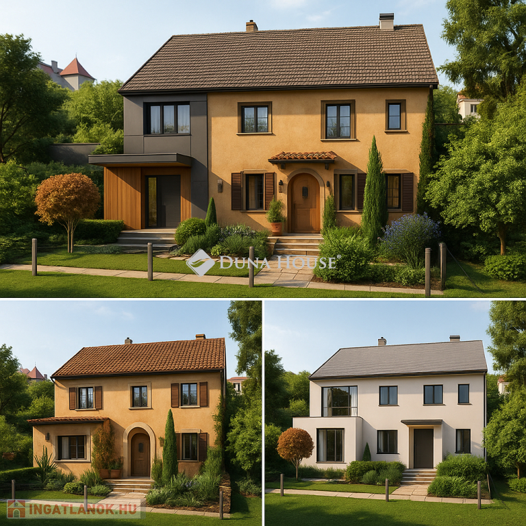 A hirdetés fotói között megtalálhatók az ingatlanhoz készült látványtervek, amelyek bemutatják, milyen stílusokban és milyen szépséggel újítható fel ez a ház legyen szó modern, mediterrán vagy klasszikusan elegáns megoldásokról.
