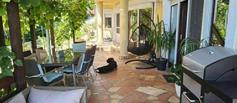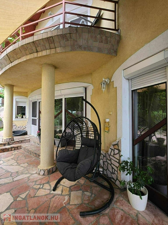 A házhoz két terasz, az emeleten pedig egy erkély tartozik, ahonnan kellemes kilátás nyílik a rendezett, gondozott kertre. Az autók biztonságos parkolásáról dupla garázs gondoskodik.