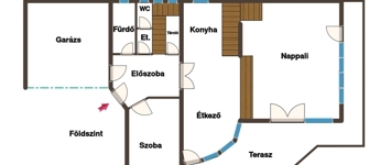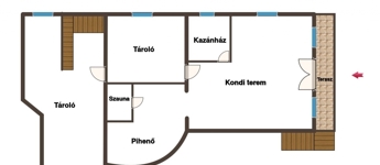 Alsó szinten külön lakás, konyhával, 2 terasz + emeleti erkély
