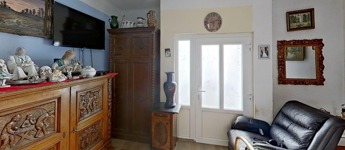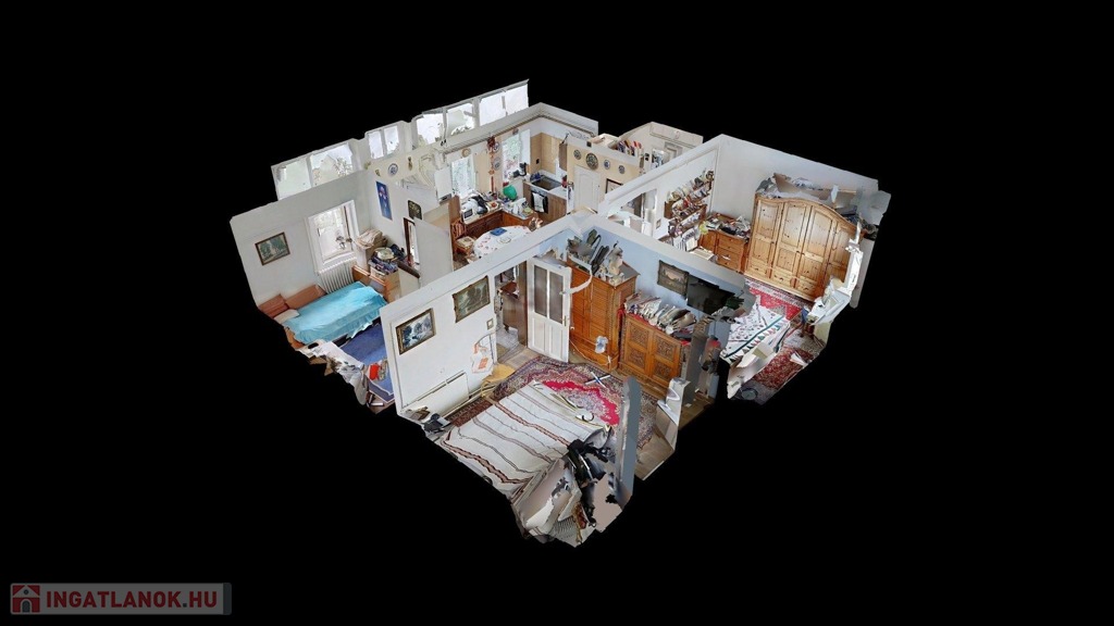 A lakás igazán élhető hiszen egy nagy, egy légterű nappali/étkező/konyha mellett az abból nyíló 3 külön bejáratú szoba áll még rendelkezésre. Ezekből a két nagyobb az utcafrontra néz, a kisebb pedig a kert felőli oldalon van. A két nagyobb szoba egyikének közvetlen (bár jelenleg nem használt) kijárata van az utcára.
