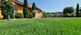 Mediterrán kert: olajfák, pálmák, gyönyörű gyepszőnyeg