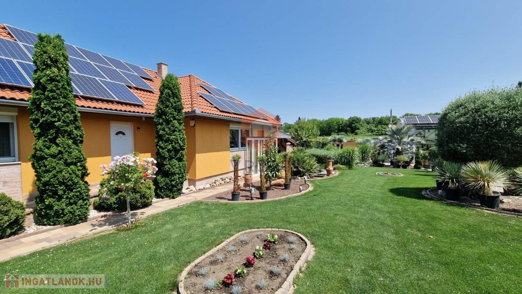Exklusives Einfamilienhaus im mediterranen Stil in Pécs-Újhegy zu verkaufen! Lage: Pécs, Újhegy Wohnfläche: 130 m² (Wohnzimmer + 3 Schlafzimmer) Grundstück: 750 m² wunderschöner, von Hecken umgebener Garten Warum ist dies Ihr Traumhaus? Moderne Architektur: 44 Porotherm-Ziegel + 7 cm Wärmedämmung, Fußbodenheizung, Energieeffizienzklasse AA. Dreistufige Heizung: Wärmepumpe • Gree Klimaanlage (in allen Räumen) • Kamin. Stromkosten: 0 HUF: 8 kW, zwei Wechselrichter, Solaranlage (3-phasig) mit Netzeinspeisung. Sicherheit: Komplette Alarmanlage und Kamerasystem. Lebensgefühl im Garten: Mediterraner Garten mit Olivenbäumen, Palmen und gepflegtem Rasen. Bewässerungssystem: ab 10 m³ Regenwasserspeicher + Brunnen. Gartenteich: mit Mehrkreis-Filtersystem. Überdachte Terrasse und Whirlpool: holzbeheizt, winterfest. Gartengrill: mit mehreren Grillrosten für perfektes Catering. Komfort drinnen und draußen. Nebengebäude: Fitnessbereich und Infrarotsauna. 18 m² Garage: mit elektrischem Hörmann-Sektionaltor. Barrierefreies Design und doppelter Komfort im Innenraum. Elektrische Rollläden, Glasfaseranschluss. + Angebot! Das angrenzende 750 m² große Grundstück mit allen Anschlüssen (17 Mio. HUF) kann auf Anfrage erworben werden und umfasst ein 100 m² großes Gewächshaus mit extra Höhe, zwei Heizsystemen und einer japanischen Pagode. Lassen Sie sich dieses sonnige Haus aus dem Jahr 2016 nicht entgehen! Rufen Sie auch am Wochenende an und besichtigen Sie es persönlich!