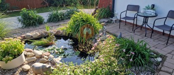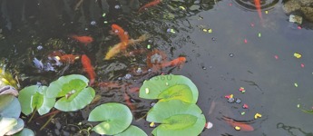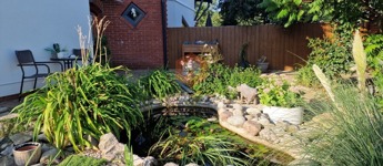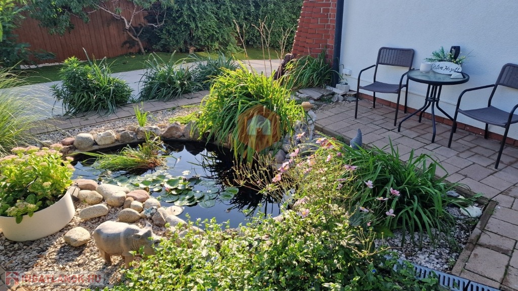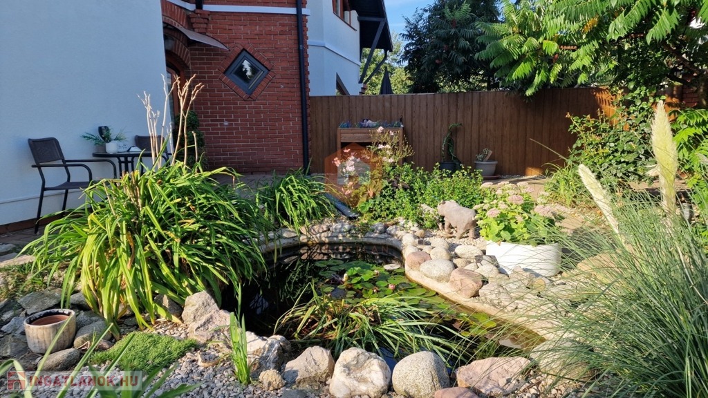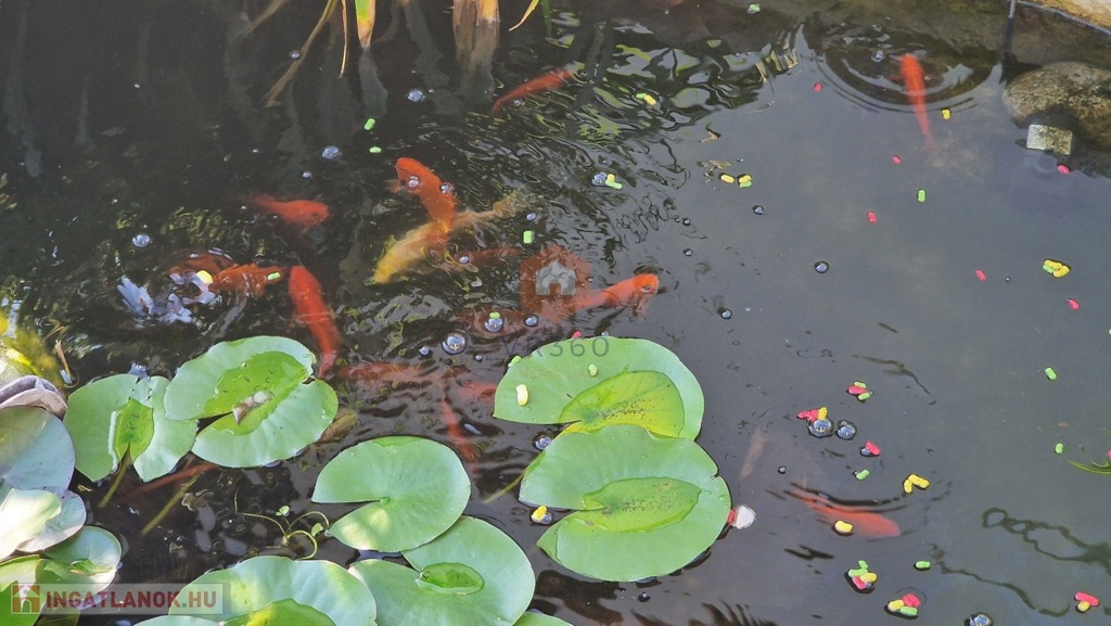 Játszótér, szív alakú kerti tó aranyhalakkal