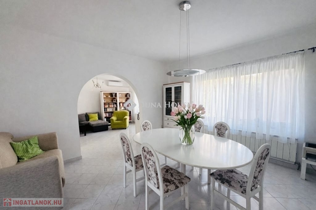 Pécs Tettye sétány közelében, csendes, közkedvelt utcában, kiváló adottságú családi ház eladó!Pécs egyik legkedveltebb részén, a Tettye sétánytól mindössze 5-6 perc sétára, nyugodt, rendezett utcában eladóvá vált egy 1992-ben teljes körűen újjáépített, kiváló adottságokkal rendelkező, belső kétszintes családi ház.Az ingatlan 813 m²-es telken helyezkedik el, amely ideális méretű, jól használható kertet biztosít.Főbb jellemzők5 cm homlokzati szigetelés15 cm tetőszigetelésMinőségi BRAMAC tetőMűanyag nyílászárók3 db nagy teljesítményű hűtő-fűtő klíma (2 a földszinten, 1 az emeleten)Junkers vegyestüzelésű kazánCirkó kazánHáromfázisú áramVezetékes víz a melléképületben isBelső elrendezésAlsó szint:Tágas, világos konyhaétkezőNagyméretű nappaliFürdőszobaKülön WCElőszobaFelső szint:4 külön nyíló hálószobaEgy központi, tágas nappali térből nyílvaKülön fürdőszobaKülön WCAlagsor / szuterinSzaunaZuhanyzóKülön WCGépészeti helyiségMelléképület extra lehetőségekkelA telken található egy fűthető melléképület, amely:külön lakrésszé alakítható (kétgenerációs megoldás), irodának / üzlethelyiségnek is alkalmas, vállalkozási célra kiváló.A háromfázisú áram és a víz rendelkezésre állása miatt a lehetőségek széles skálája adott.ParkolásAz utcafronton található garázs akár két autó számára is kényelmes beállást biztosít.ElhelyezkedésTettye sétány 5-6 perc gyalogCsendes, rendezett, értékálló környékKiváló infrastruktúraPanorámás elhelyezkedés, amely minden évszakban különleges hangulatot biztosítEz az ingatlan ideális választás lehet:nagycsaládosoknak, kétgenerációs együttélésre, vállalkozóknak, befektetésre.