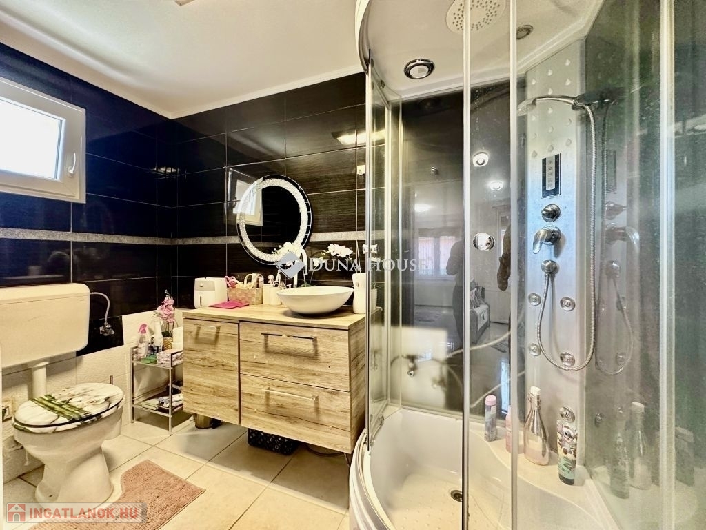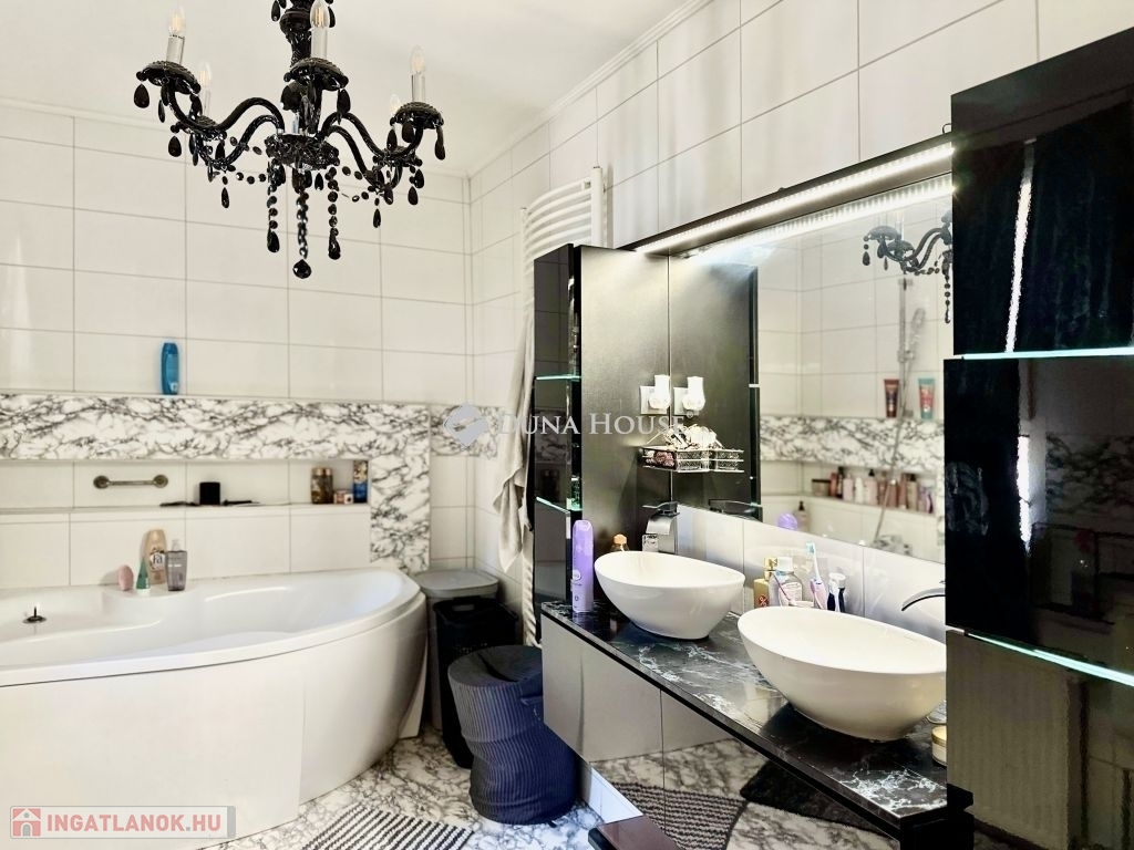 Felújított, tágas családi ház vendégházzal!Eladó egy igényesen felújított, kiváló állapotú családi ház, amely minden szempontból kényelmes és modern otthont kínál. A 248 m²-es főépületben 4 tágas hálószoba és 3 fürdőszoba került kialakításra, így nagyobb családok számára is ideális választás.A ház fűtéséről korszerű gázcirkó rendszer gondoskodik, az energiahatékonyságot pedig egy 16 kW-os napelemrendszer támogatja. A felújítás során új, hőszigetelt nyílászárók kerültek beépítésre, a biztonságról elektromos kapu, riasztórendszer és kamerák gondoskodnak.A 1448 m²-es, rendezett telken egy különálló, 60 m²-es vendégház is található, amely villanyfűtéssel rendelkezik tökéletes lehet vendégek fogadására, otthoni irodának vagy akár kiadásra is.Csendes környezet, modern megoldások és tágas életterek remek lehetőség mindazoknak, akik minőségi otthont keresnek!