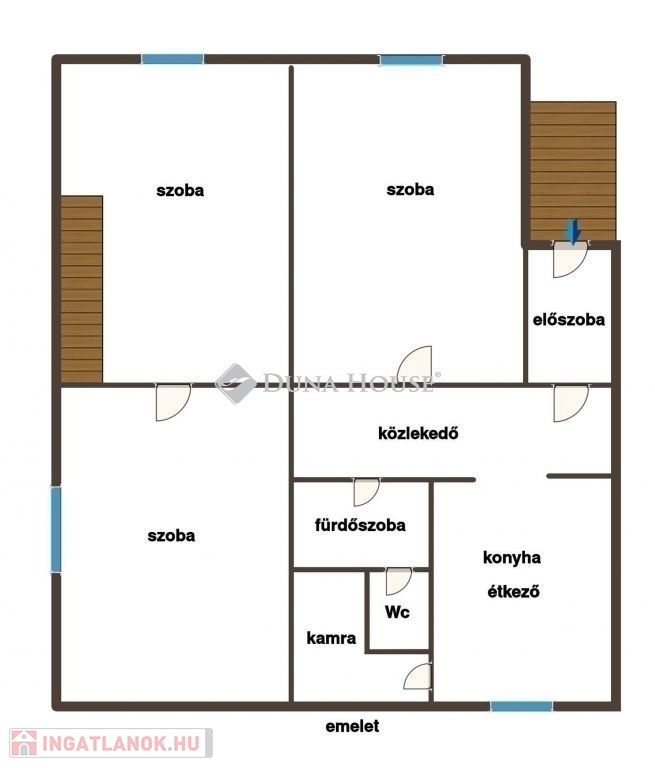 Földszint: 2 tágas szoba + konyha-étkező + fürdő.