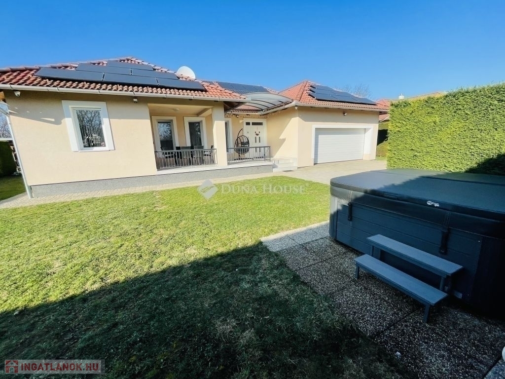 Modernes Einfamilienhaus in PécsÚhhegy mit Solaranlage und Doppelgarage. Ein eingeschossiges Einfamilienhaus aus dem Jahr 2010 steht im ruhigen Teil von PécsÚhhegy, in der Barázda-Straße, zum Verkauf und ist eine ideale Wahl für Familien. 164 m² Gesamtfläche, 132 m² Wohnfläche, 32 m² Doppelgarage. Räume: Amerikanische Küche, Wohnzimmer mit Essbereich, 3 Schlafzimmer, Ankleidezimmer, 2 Badezimmer + Gäste-WC, Speisekammer und Hauswirtschaftsraum, 20 m² überdachte Terrasse. Technische Ausstattung: Viessmann Gastherme, Fußbodenheizung und Heizkörper, Kamin, Honeywell Raumheizung, 5,2 kW Klimaanlage, 3 x 25 Ampere 7 kW Solaranlage mit Restzahlung bis 31.12.2030. Extras: Elektrische Aluminium-Rollläden, elektrisches Garagentor und Gartentor, Alarmanlage und Kamerasystem, Wasserenthärtungsanlage. Garten: * installierter Mähroboter * privater Garten mit Leyland-Hecke * privater Spielplatz * Gartenofen/Grillplatz * 10 m² großes Holzhaus * Holzlager * finnische Sauna und Whirlpool * 10 m³ Zisterne mit mechanischer Bewässerung * Obstbäume. Ruhige, familiäre Atmosphäre mit großzügigen und hellen Räumen. Alles ist vorhanden, um sich hier wie zu Hause zu fühlen. Bei Interesse kontaktieren Sie uns bitte. Lass es uns gemeinsam ansehen, damit du dich selbst davon überzeugen kannst, dass dies genau das ist, wonach du gesucht hast!