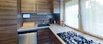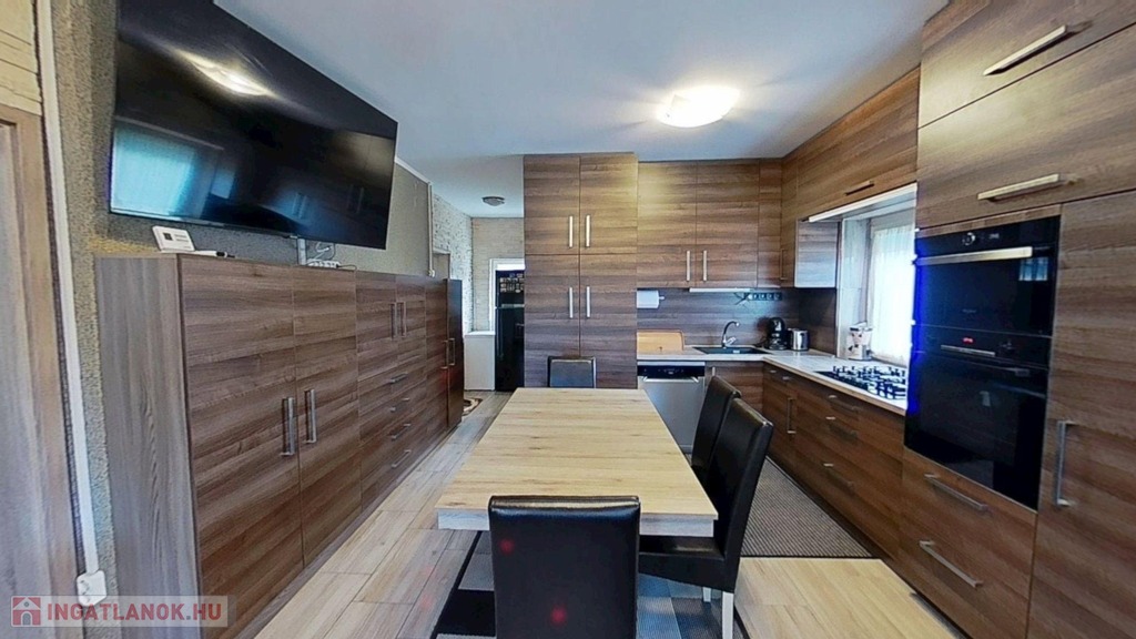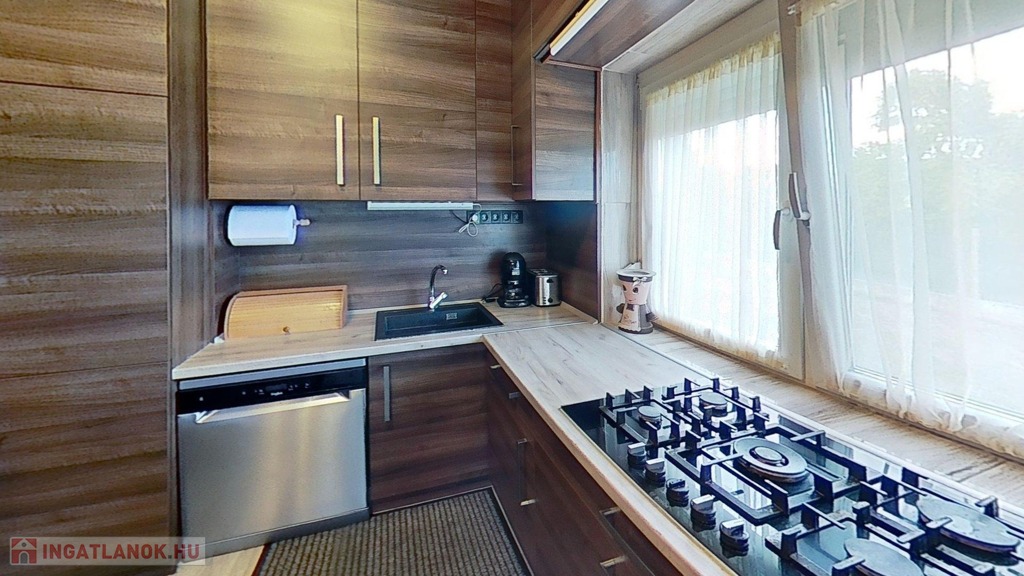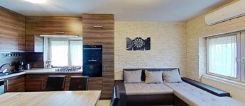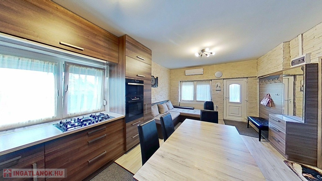 -valamint új beépített konyhabútorral és gépesítéssel (Bosch villanysütő 5 fejes gázrózsákkal, mosogatógép, gránit mosogató és csap) , illetve 3 db 3,5 kW-os Gree klímával is gazdagodott a ház, melyek természetesen a vételár részét képezik.