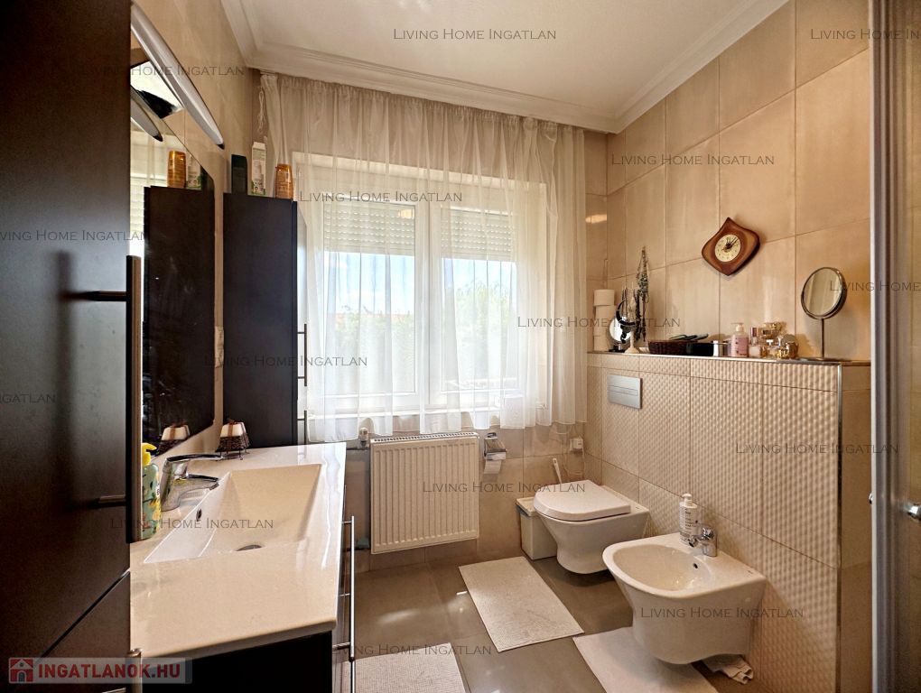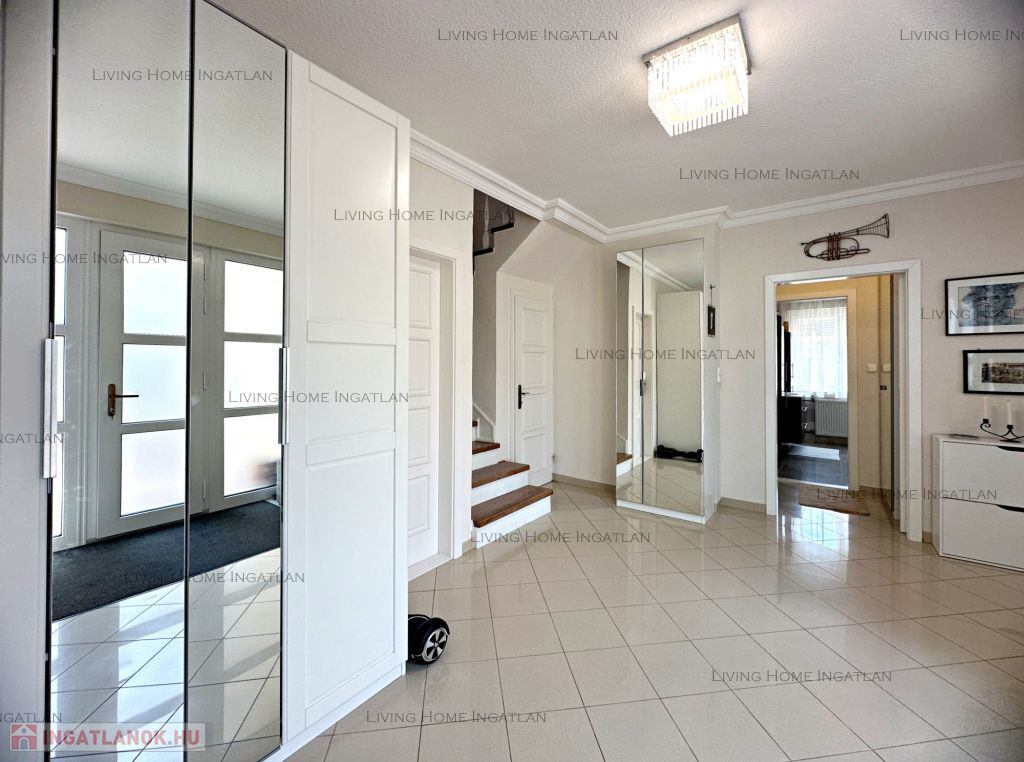 Pilisvörösvár is a dynamically developing small town in the direct agglomeration of Budapest, at the foot of the Pilis. The property is located in a quiet, family-friendly environment, with excellent infrastructure. The 600 sqm intimate garden is surrounded by ornamental trees, well designed. The courtyard can comfortably accommodate several cars, the covered carport can park one car with electric charging facilities. The total size of the house is 317 sqm, the two residential floors are 220 sqm.