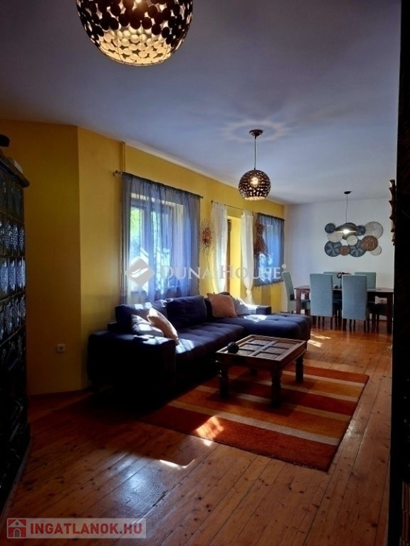 Pogányban tágas családi ház eladó festői környezetben, hangulatos kerttel Pécstől mindössze 6 km-re!Pogány összetartó közösségében, egy hangulatos horgásztó közelében eladó egy 1999-ben épült, 2018-ban korszerűsített családi ház. Az ingatlan nettó 119 m² lakóterű, elosztása ideális családok számára: *a földszinten tágas amerikai konyhás nappali, szülői hálószoba saját fürdővel, mosókonyha, valamint kertkapcsolatos, hangulatos terasz található. *az emeleten 2 kisebb (akár összenyitható) és 2 kényelmes méretű szoba kilátással a dimbes-dombos vidékre, fürdőszoba és gardrób került kialakításra. Kondenzációs gázkazán és cserépkályha, míg a kisházban a gázfűtés mellett vaskályha szolgáltatja a meleget. A házhoz tartozik egy boltíves borospince, valamint egy külön, kb. 50 m²-es épületrész, amely önálló lakrészként, műhelyként vagy hobbiszobaként is hasznosítható. Rengeteg kisebb nagyobb tarolásra alkalmas praktikus tér található a családi otthonban. A tágas, vadregényes kertben gyümölcsfák, árnyat adó diófák, tűzrakóhely, medencének való hely került kialakításra, valamint utcafrontján fedett dupla gépkocsibeálló is megtalálható. A telek kellő távolságot biztosít a szomszédoktól, miközben igazi nyugodt, intim életteret kínál. Az ingatlan kiváló választás lehet kétgenerációs együttéléshez, családosoknak vagy azoknak, akik a természet közelségét és a nyugalmat keresik, de nem szeretnének lemondani a város közelségéről. Hangulatos otthon, vadregényes kerttel, mindössze pár percre Pécstől!