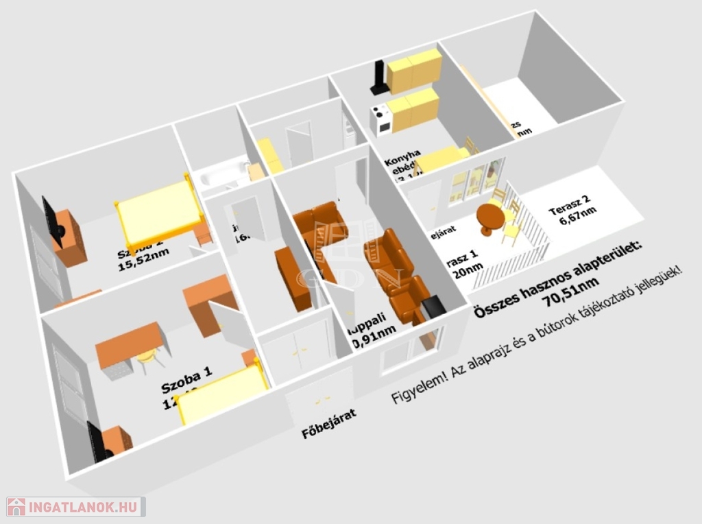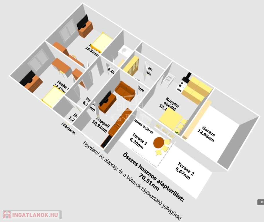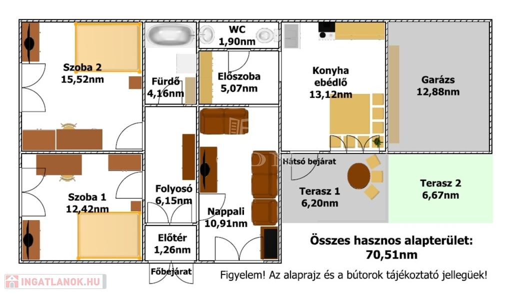 Az épület hasznos alapterülete 70,51nm melyben található: