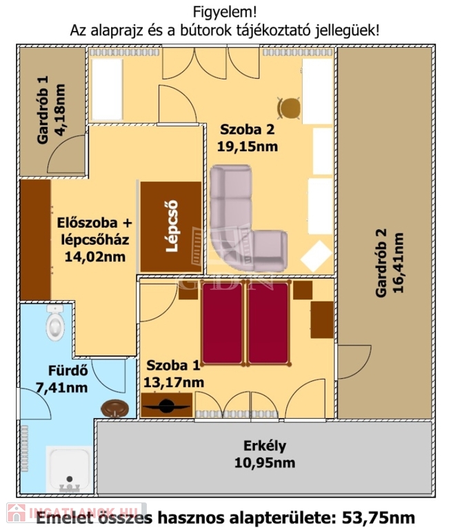 Az épület hasznos alapterülete 155,92nm melyben található: