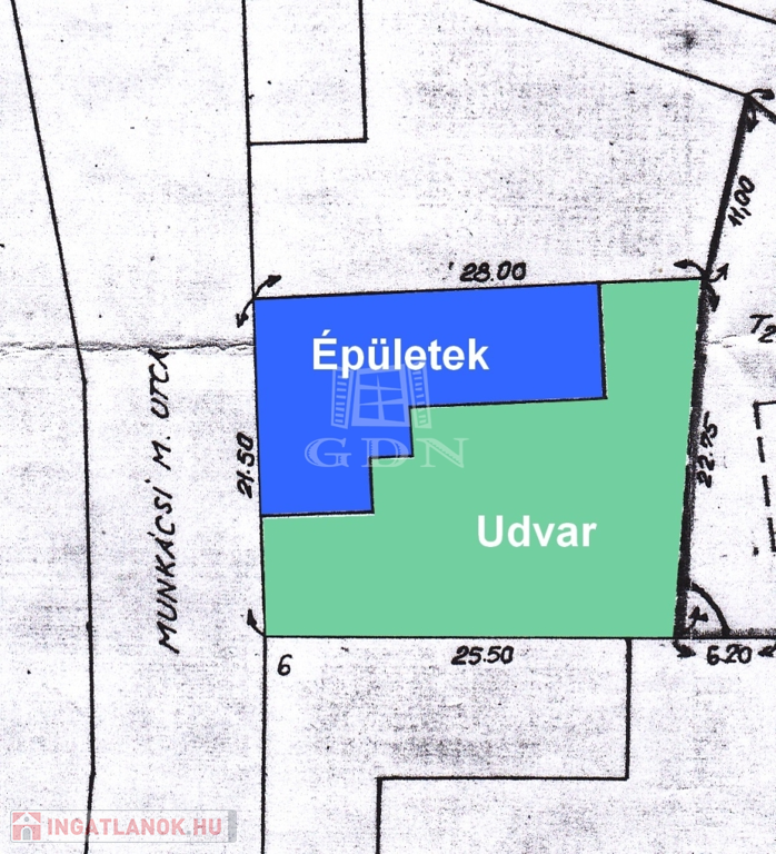 Polgáron a város központjában a Munkácsy utcán eladó egy 18 lakásos társasház építésére is alkalmas telek, a rajta lévő felújítandó 3 szobás házzal.