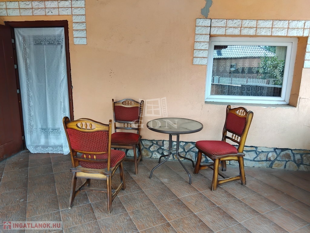 A kertes ház a 70-es években épült beton alappal és vegyes falazattal (vályog és tégla). A tetőszerkezete amerikai stílusú kombinált tető, zsindelyfedéssel ellátva. A fűtést helységenként elektromos fűtő testek biztosítják továbbá a nappaliban a falba épített hagyományos kandalló is hasznosítható. Az épületben villany (1x32A), víz, és csatorna be van kötve.