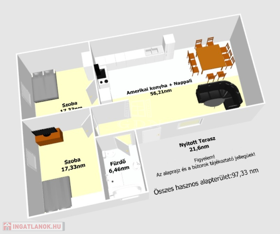 - amerikai stílusú konyha + nappali,