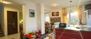 Az alsó szinten tágas közlekedő/előszoba, WC, fürdőszoba beépített zuhanyzóval, amerikai konyha-nappali teraszkapcsolattal került kialakításra.
